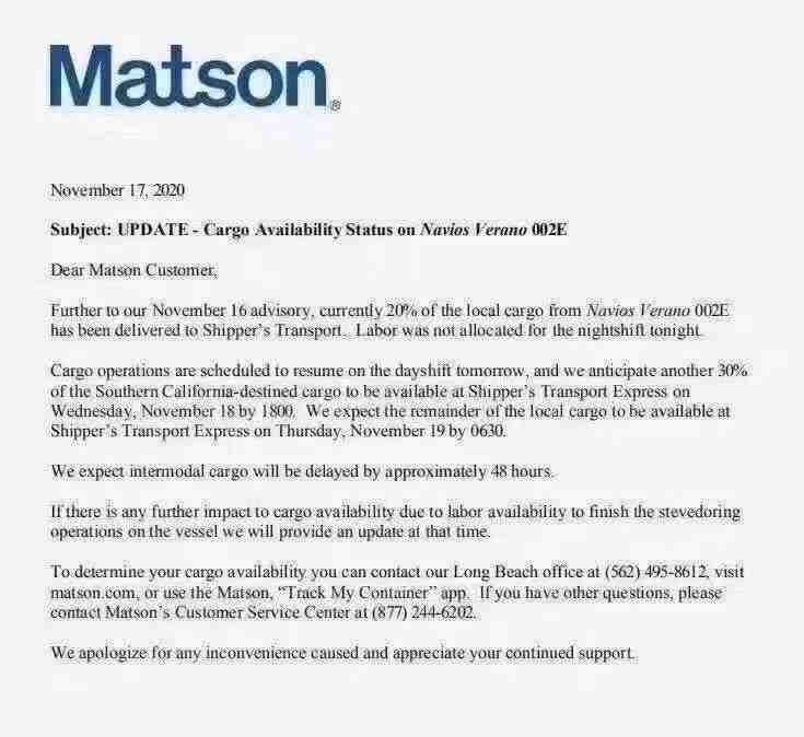 “订舱都要摇号了,时代变了” 2020年跨境电商有多魔幻?海运塞港、快递排仓、卡车堵塞,铁路摇号,空运价格波动,情况也较为糟糕,卖家简直太为难了。 近期,盐田至阿尔赫西拉斯的运价已高达10000USD,马士基发言人表示:“7月至10月间,已将所有能找到的集装箱全部出租了,但是租赁市场已经‘干涸’,市场上没有空箱了。” 真的是时效不保证,服务待考究,还要面临着10000美金的天价海运费。货代和跨境电商卖家都遭受着沉重的打击。而这种情况可能会持续到明年春季。 许多卖家纷纷吐槽:“这几家大的船运公司,几乎垄断了海运,海运费说涨就涨,而且我们还拿他们没办法,要么无奈接受,要么客单转移到其他国家,到头来苦的都是出口商。” 劳动力严重短缺,洛杉矶和长滩码头情况不容乐观 今日,有不少货代发朋友圈表示,以星,美森,长荣均通知:美国洛杉矶LA码头和长滩LB港码头由于疫情和劳动力严重短缺,造成的航行时间加长及塞港导致的提货时效异常缓慢的程度超乎各位的想象,请做好心理准备。 以星通知: 美森通知: 长荣通知: 对此,货代透露目前的物流基本情况就是:头程运价飞涨,抢舱位抢打单抢柜子,出口集装箱散落全球各地,回流不畅,目的港码头劳力不足,卸船提柜延后,塞港,到港时间严重Delay。 (图片来源:朋友圈截图) 相对而言,年末可能是一个非常时期,国外疫情再次升级,黑五网一、感恩节和圣诞节等年末旺季,卖家最好提前备货,排配好发货周期。 18个亚马逊仓库爆仓,UPS信息更新不及时 据货代反馈,近期亚马逊亚利桑那州的PHX3、PHX5、PHX7和加利福尼亚州的OAK3、SJC7、SMF3、ONT2、ONT6、ONT8、ONT9、LGB8、LAX9、SNA4/6/7/8和LGB6/4等仓库爆仓,UPS和FedEx比较难送进去,尾程派送也比较缓慢,卖家最好选择更为安全稳定的渠道。 (图片来源:货代朋友圈) 除此之外,货物积压严重,工作人员不足,UPS官网对物流订单的更新也不是很及时,客服也没有提供回复,卖家搞不清楚自己的货物现在处于什么状态,觉得十分焦急。 (图片来源:物流资源群截图) 类似的情况在7月份非常常见,UPS核查难度比较大,如果每个站点扫描不更新,他们只能是依照官网查询的数据为准,而且UPS的客服很多都是套话。遇到这种情况,很多时候都不尽其然,如果UPS官网数据7-15天还未更新,卖家要多多留意后台的入库情况;如果没入库,还没有更新,就需要货代那边帮助核查了。 不管是海运、中欧卡航还是亚马逊仓库,现在基本都处于“货满为患”的状态了,卖家且订且珍惜吧。 2020年注定是不平凡的一年,但卖家们还是要打起精神继续加油,因为年末旺季就要来了。