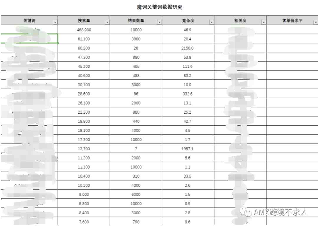 选出主推词外的其它关键词,即流量词。流量词比主推词各个方面条件差一些,在这里分开是因为主推词需要倾注人力资金去推广,流量词前期只是埋入listing文案。