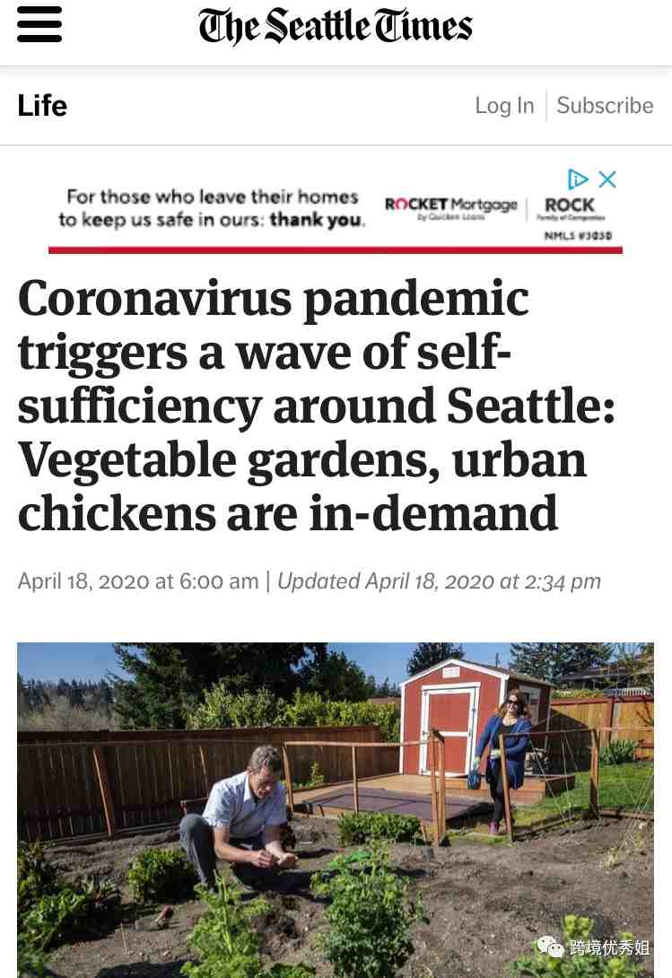 美国种子公司W. Atlee Burpee 的董事长说,光是3月份的蔬菜种子销量,就创下了该公司144年历史上的最高纪录。华州斯旺森苗圃(SwansonsNursery)则不得不紧急订购蔬菜和可食用香草,以保证能供应上市场的需求。