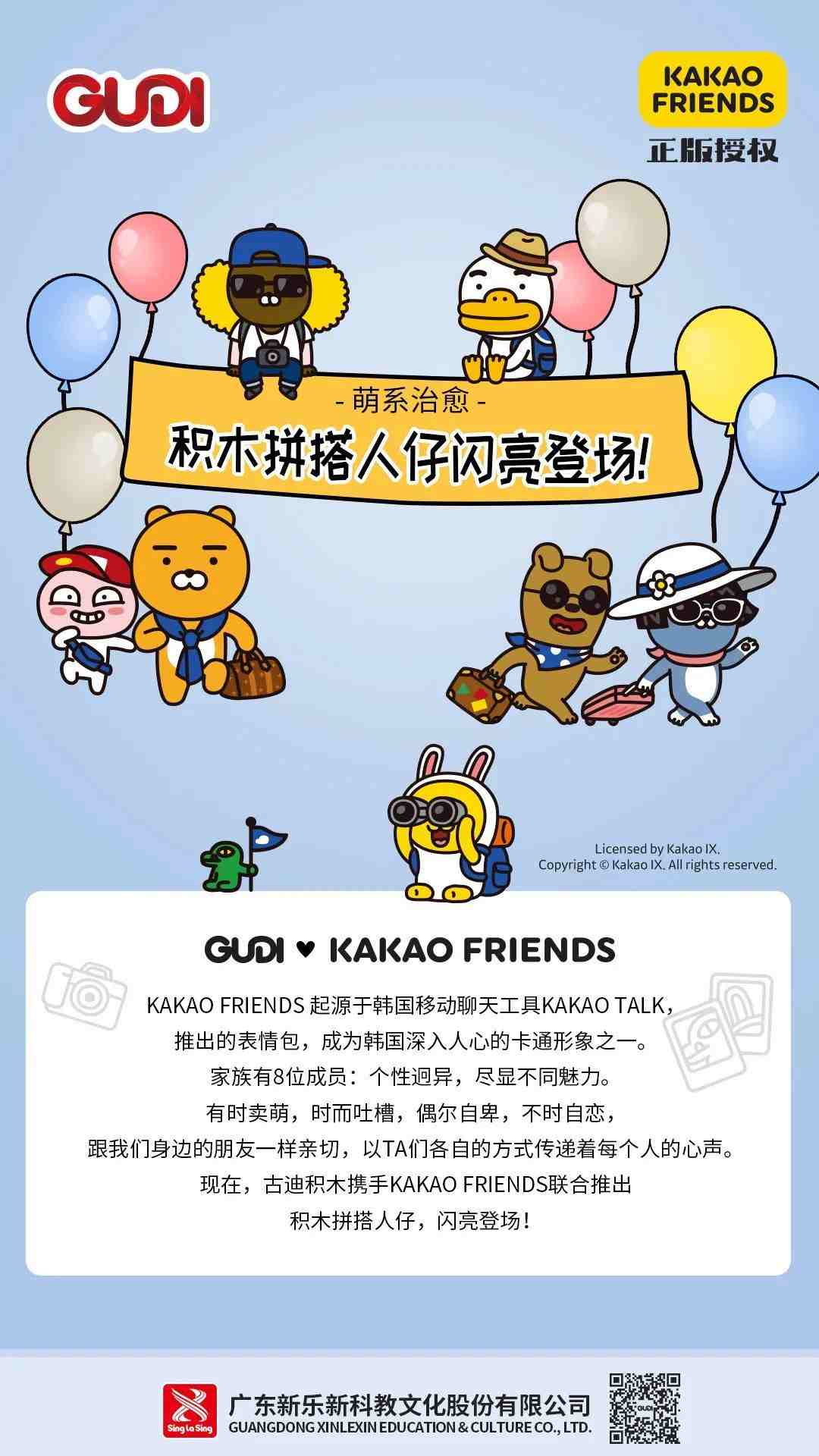 近日,知名积木品牌古迪积木和韩国人气表情包KAKAO FRIENDS家族联合推出了一系列积木拼搭人仔。近期刚完成品牌升级的古迪积木,会为我们带来什么样的惊喜呢?