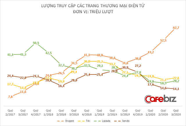 Tiki第三季度月访问量达2200万,从2019年第一季度开始已经连续7个季度月访问量超过Lazada。