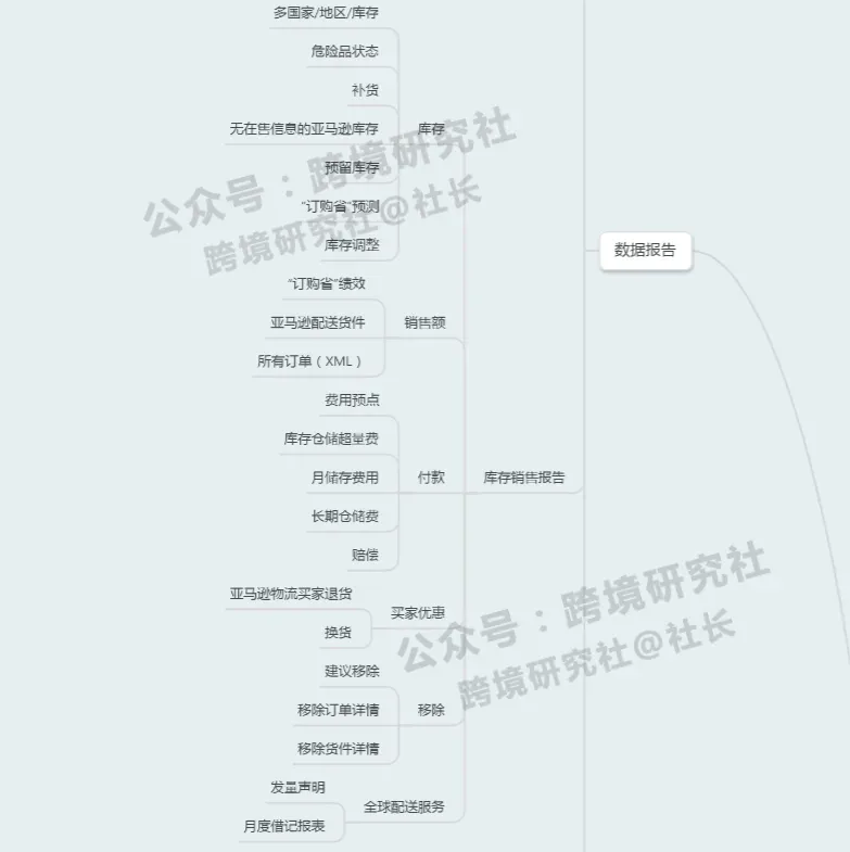 1 后台操作:B2B和绩效 2 后台操作:绩效 3 后台操作:数据报告 部分的后台操作:“数据报告”模块未完结,想要了解更多,可以持续关注下期的亚马逊思维导图。 另外,下期我们也会讲到亚马逊的后台操作的四大板块:品牌旗舰店、应用服务、目录、库存;其中最为核心的是——库存模块,也是大家关心的地方;持续关注社长吧!