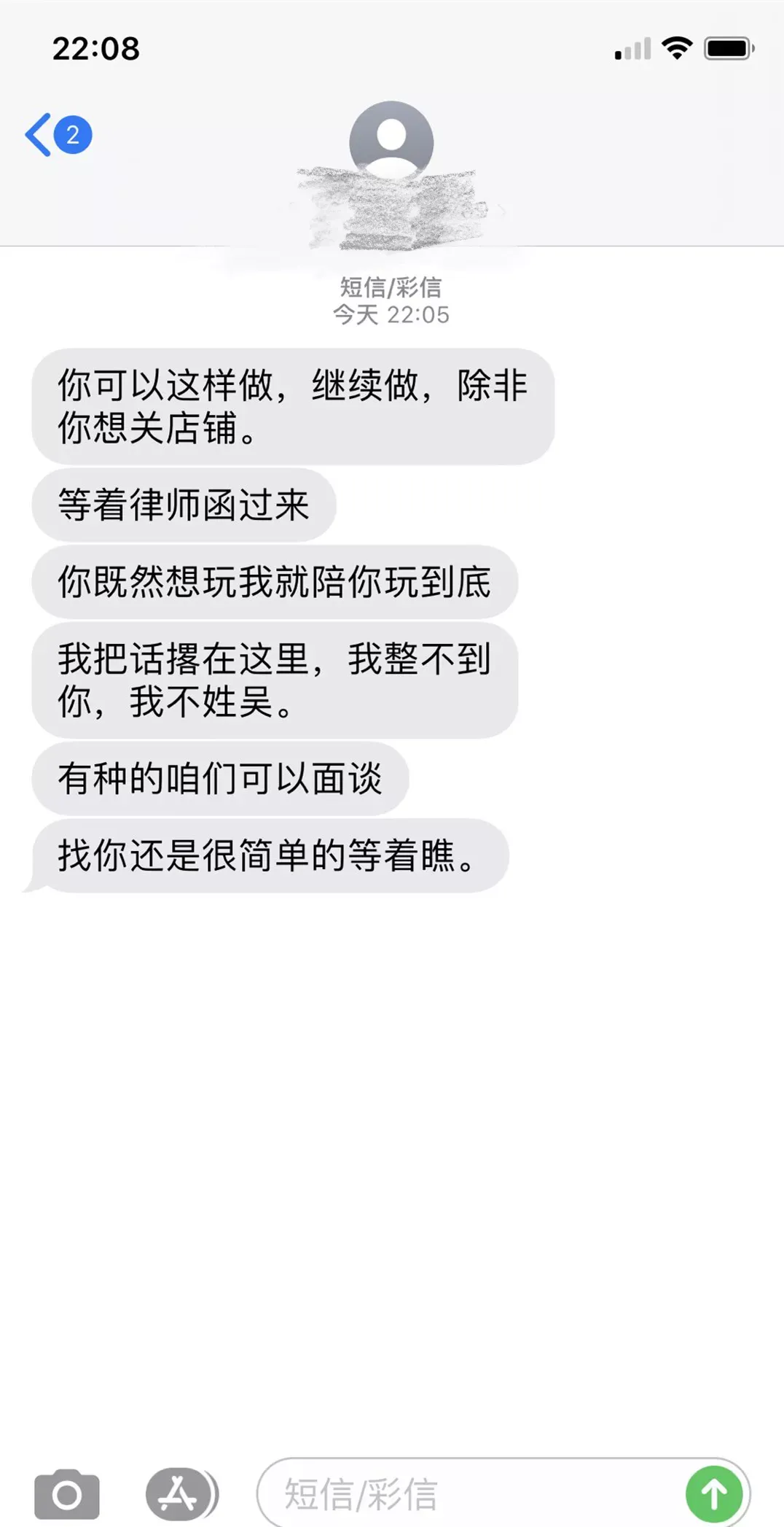 更可怕的事情在后面,因为该卖家在微信群指责该货代不回复信息,很黑心,按照快递价格收取却发空运。当晚卖家就收到了他们的威胁短信,说要搞死卖家的店铺。