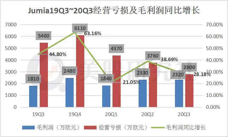 在物流运输业务运营水平方面,jumia大量的运营改进推动了履行费用效率的提高,包括批量定价模型从每包成本更改为每停成本,以及在履行中心提高生产率,2020年第三季度的配送费用更是因此同比下降了20%。