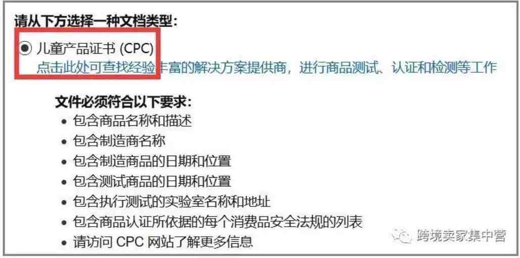 CPC证书的具体要求在亚马逊的后台可以看到。