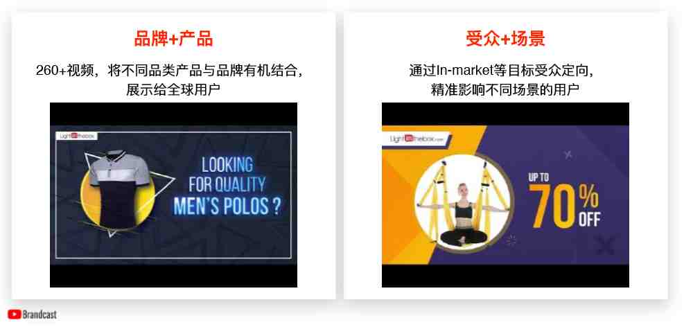 在 2020 YouTube Brandcast 大会中,YouTube 引用了兰亭集势的案例来展现 YouTube 在品效合一上的做法。中国出海品牌兰亭集势选择了在 YouTube 上投放广告,但是其投放的广告目的不仅是宣传品牌,也落实到广告投放各项数据的提升上。