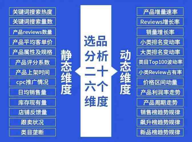 认识我的同学应该有了解到我之前讲过一门数据选品的课程,我把亚马逊的选品数据分为静态和动态总共26个维度去解析和判断,数据维度越细越全方位,人对选品判断越精准。