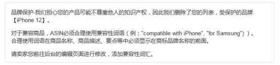 对此,有卖家猜测兼容词有无并不是关键点,虽然亚马逊官方邮件是这样提醒卖家的:”对于兼容产品,ASIN必须合理使用兼容性词语(例“compatible with iPhone”),请卖家修改,添加兼容性词汇。”