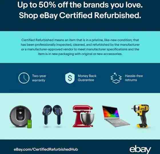 此外,eBay还要求通过该计划出售的任何物品都必须保持全新的状态,并经过制造商或制造商认可的供应商的专业检查、清洁和翻新,以符合规格要求。物品必须装在带有原始或新配件的新包装中。