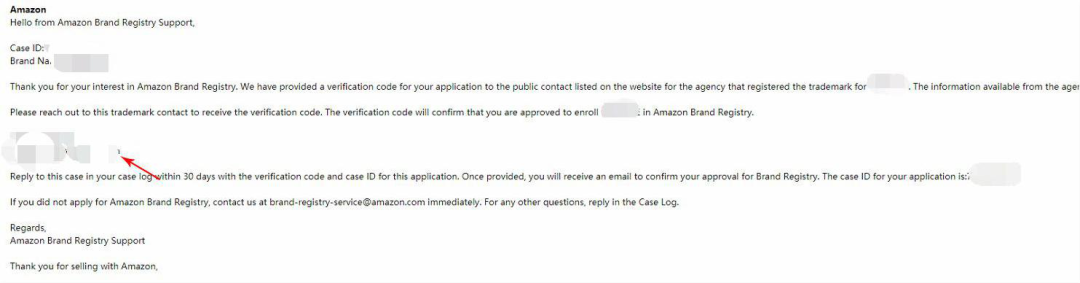 3. 完成以上步骤,大概24小时内会收到亚马逊的回复,回复邮件里会包含一个CASE ID,你需要回复该case并附上一个验证码。亚马逊会将验证码发送到你申请时填写的邮箱里,如果忘记了那个邮箱它也会在邮件中显示(如下图)。