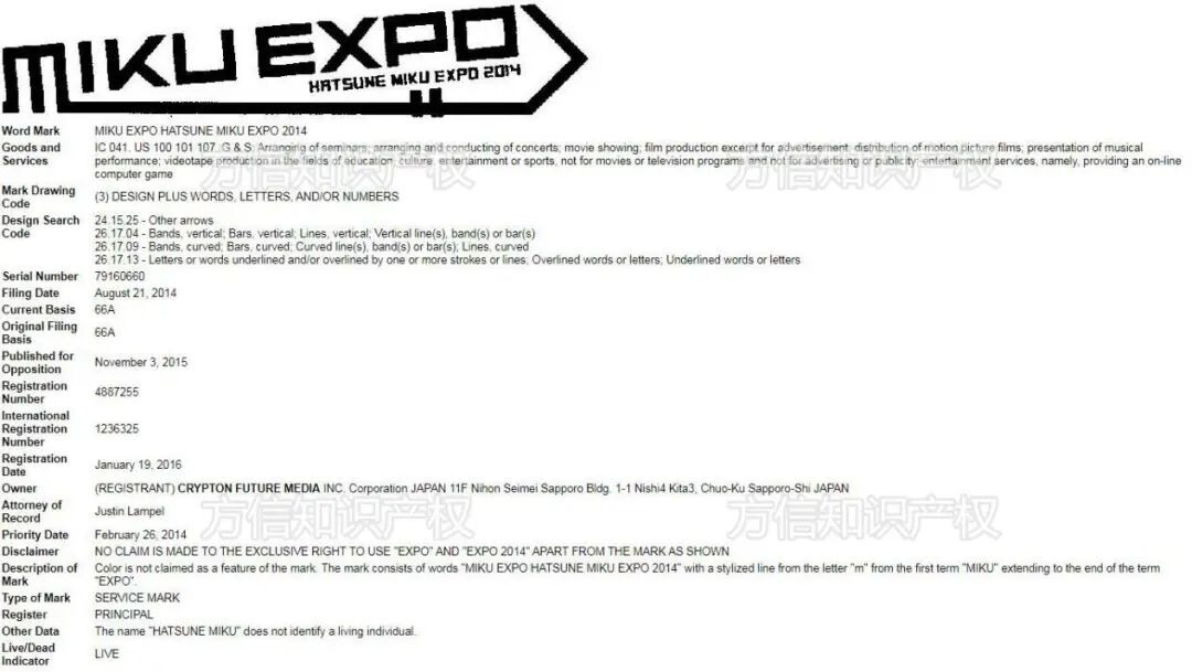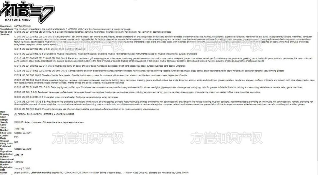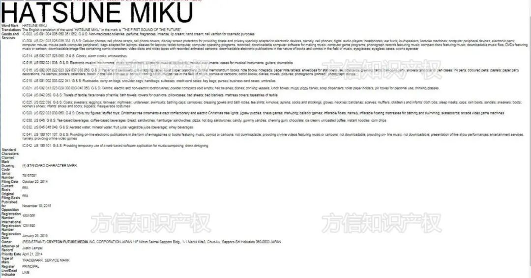 (初音未来美国部分相关商标)