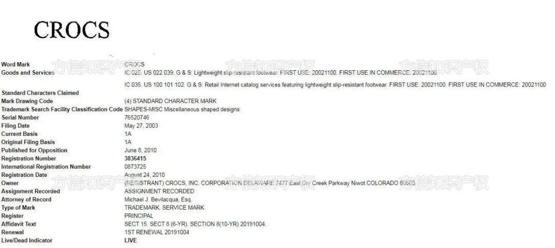 (crocs相关美国商标)