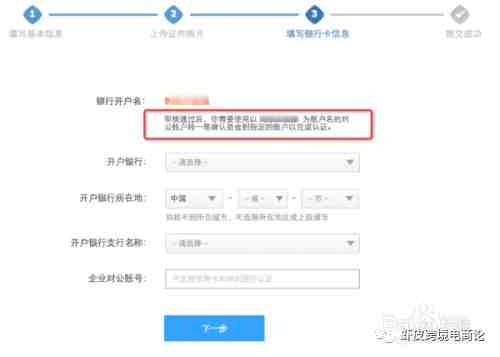 信息填写完成之后开始填写企业信息,对公账户等填写完成之后等待系统审核