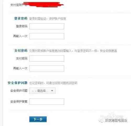 填写相关的信息,登录密码,支付密码以及密保问题