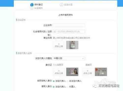 然后进行填写企业相关信息并上传相关资料如营业执照、法人身份证等进行实名认证