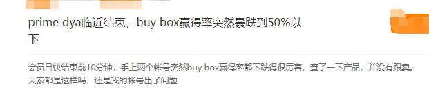 也有卖家表示,可能是会员日期间产品价格问题,系统把会员日折扣当成一般的降价了,所以Buy Box获取率才会下降。