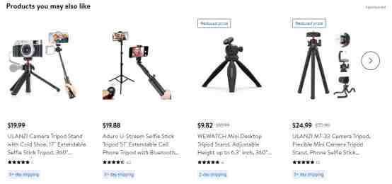 以“tripod”为例,当买家在前台搜索“tripod”时,这类广告则会展示在搜索结果页面,浏览页面中,买家点击后就可以直接进入到商品详情页面。