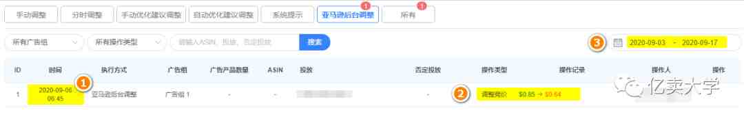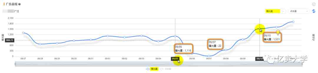 如图所示,当由于预算或库存原因需要减少广告曝光时,我们可以对关键词竞价进行调整;调整后对于广告曝光的影响程度,我们便可以借助以上信息进行有条件的科学分析,得到客观的调整效果,这样才能更好地根据数据进行下一步调整。