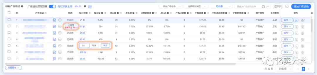 除常规广告数据外,用户可查看广告活动超预算的时间,并及时调整以保证广告活动正常运行。