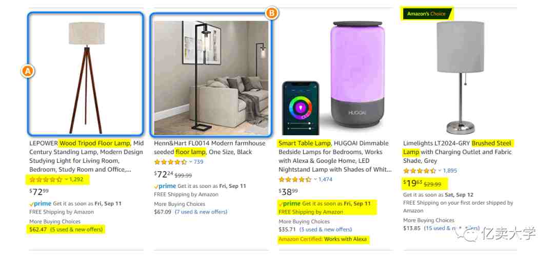 如下图,当我们转换身份成为亚马逊消费者的时候,面对的是网页上各种引诱我们点击的因素:图片、产品星级、评论数量、价格、优惠券、更快的配送方式等,任何一种都有可能引起我们的好奇心与购买欲。反之,当我们作为一名卖家时,目光所及之处,要比客户看的更远更广。