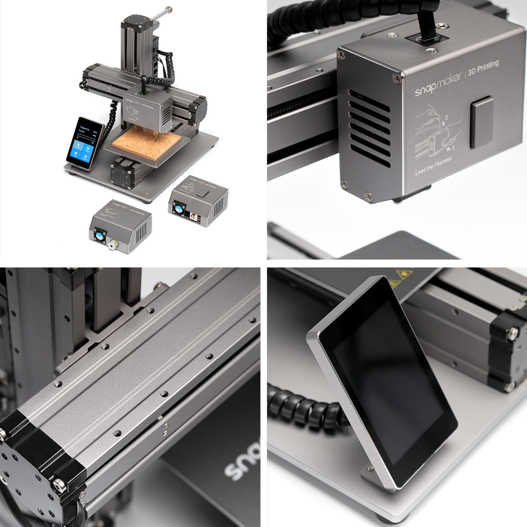 桌面级 3D 打印机在个人场景中的应用较多,但存在着组装和操作复杂、功能单一等问题。除了3D 打印之外,激光雕刻、CNC 雕刻等制造功能在个人使用场景中的需求也十分广泛。在 Snapmaker 在 Kickstarter 亮相前,市场上几乎看不到一款集三种功能于一体的 3D 打印机。