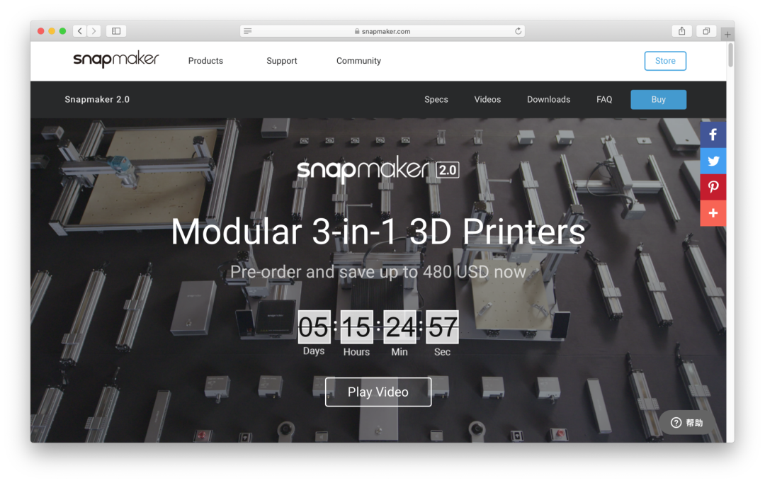 2017 年 6 月,Snapmaker 自主开发了独立网站,Snapmaker 希望通过官网转化潜在用户,通过预售为众筹活动后对产品感兴趣的用户提供购买渠道。但是,在官网的扩展功能研发时,品牌发现需要投入较多的人力和时间。为了不断提升建站效率、优化用户体验、实现品牌展示和销售转化目的,Snapmaker 转而使用 Shopify 建立独立官网,通过 Shopify 来实现预售并沉淀更详细的用户数据。
