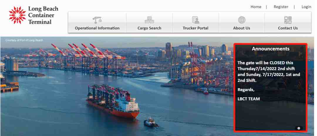 长滩集装箱码头(LBCT)通过官网发布最新公告:7月14日(周四)以及7月17日(周日),码头闸口部分时段将被关闭!预计集装箱码头闸口的关闭,将对提柜和还柜作业带来影响!