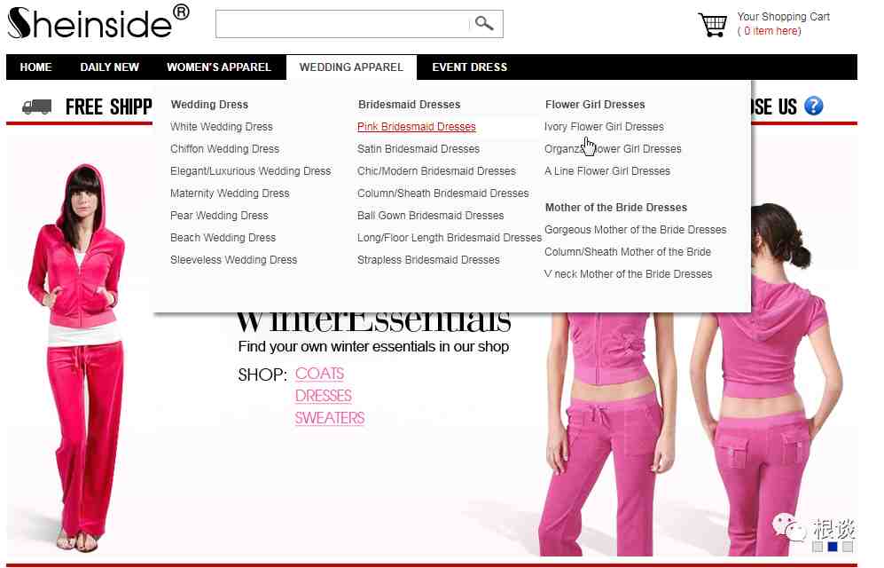 Sheinside当时的品类线比较简单,有女装和裙装为主要品类线,其中裙装里面婚纱礼服是重点品类,就其他那是中国跨境电商的早期电商一样,比如兰亭集势,大龙网,DX,米兰,TinyDeal等第一批B2C跨境电商,由于婚纱礼服产品线毛利极高的品类线,价格便宜,再加上当时Google和facebook广告流量的红利期,很多企业靠着这个品类线获得了第一桶金,完成了资本的原始积累。