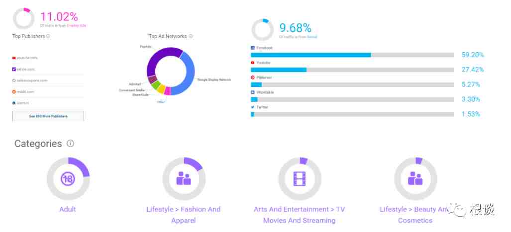 引荐流量占比7% (主要是渠道引荐,通过外链来源来看里面存在大量垃圾流量,其中有条外链流量占比3%(注意是占整个网站),再结合流量的分类来看,有大部分是成人网站流量来源)可能是联盟渠道引荐进来的,当然也不排除是官方刻意做的,来提升网站的排名,不过对于品牌也有一定的负面影响)