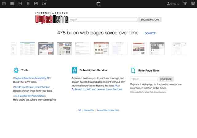 此外,Wayback Machine还提供线上网页备份功能,只要输入要备份的网页网址,就能将它截取下来,产生一个独立且永久保存的网址,之后还能在Wayback Machine以时光机功能随时回顾不同时间点自动抓取备份的网页内容。
