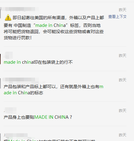 是的,你没看错。发往美国的所以货件不管是纸箱外箱以及产品上面都必须要有“made in china”标签。
