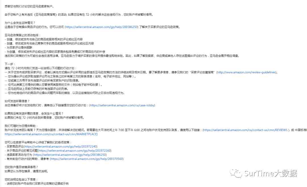 一般操纵评论被封邮件有两种,近期出现较多的一种,如图: