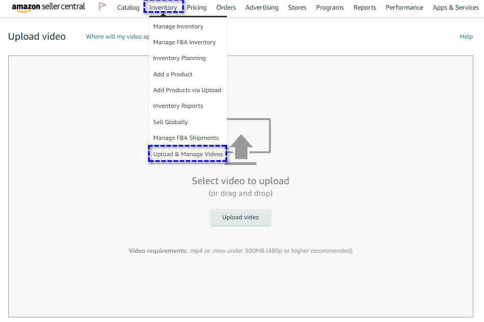 卖家可以通过点击「库存」标签下的「上传和管理视频」来利用此功能。