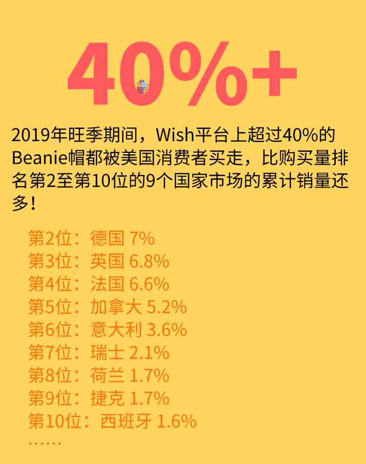 美国是Wish平台最大的市场,相信你也基本猜到美国是Beanie帽最大的市场了,但是美国的购买量有多大呢?