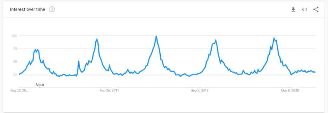 *Google数据中,Shopping类目下“Beanie”的搜索热度趋势图