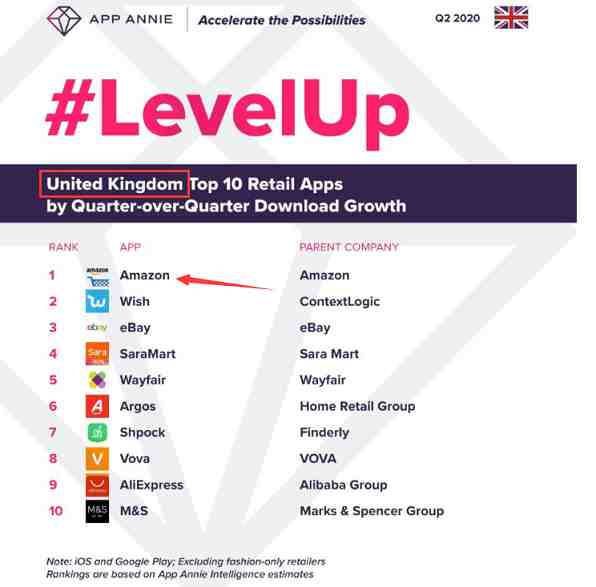 不只在美国,在英国的排行榜中亚马逊也稳居第一。