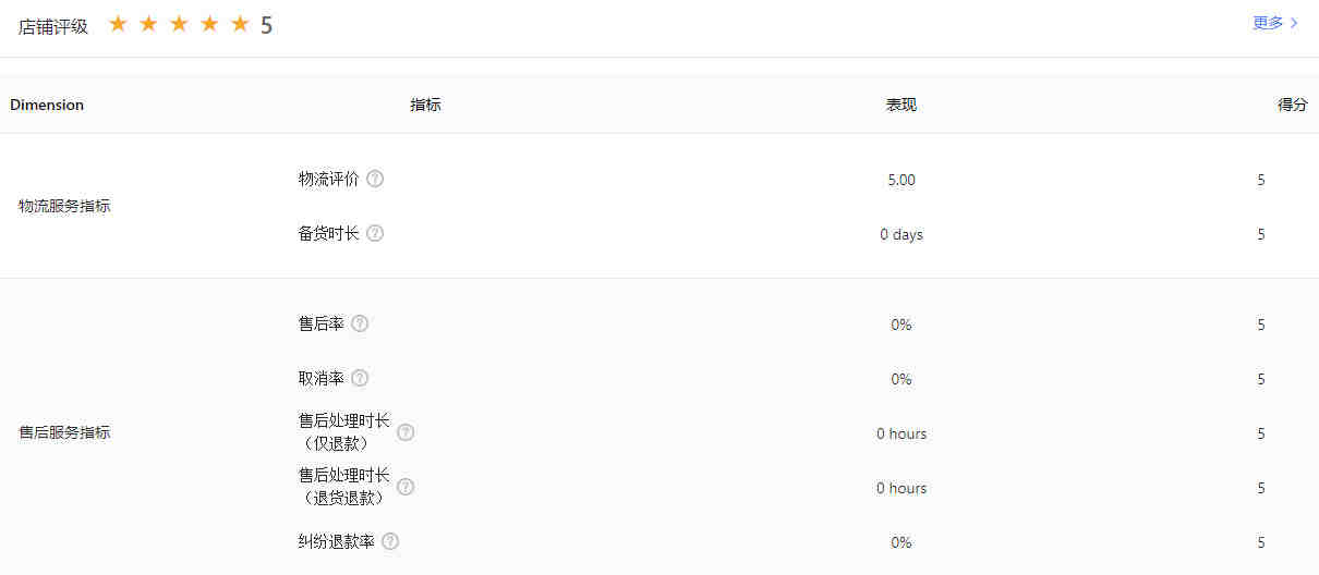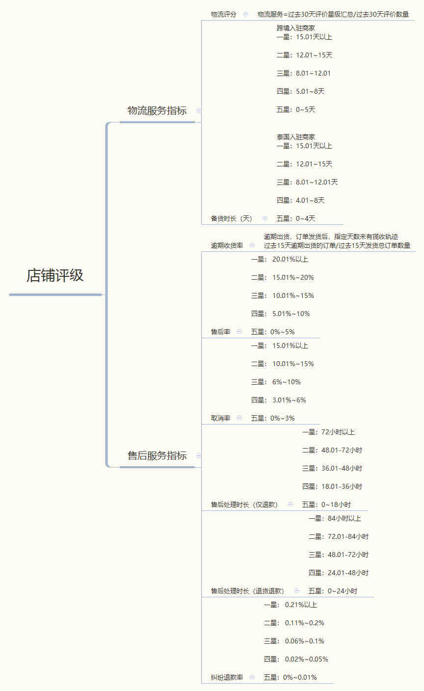 新增功能店铺评级,店铺评级分为物流服务指标和售后服务指标,物流服务指标为:物流评价和备货时长;