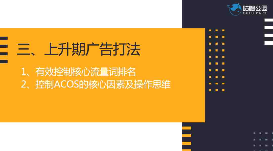怎么选出哪几个词呢?有几个逻辑,这几个逻辑是串联在一起的。打造之前前期的工作非常重要,选择一个产品,差异化产品。之后写一条好的Listing,从核心卖点和详细页面里面选好更多的词,做好埋词,这样更好匹配出很多的流量词出来,这样才可以更好做自动广告的打造。这是一个整体的逻辑,在分享之前,人家说ACOS很高,怎么降低ACOS呢?很多人说大部分人做ACOS怎么做呢?竞价太高了,降低竞价和预算,因为它花钱太多。影响ACOS的因素是什么?设的流量太多,点击付费和无效流量;二是转化率太差,我们广告出单太差才会导致ACOS太高,这时其实是转化率的问题,与我们的竞价是没有太大问题的。一旦我们转化率高,精准流量引进来,转化率高,ACOS就不会高,很多人在控制ACOS比例时有误区。怎么做呢?控制ACOS的前提是,不断筛选核心的流量,一旦你发现都是核心流量和精准流量进来以后,ACOS还是很高一定是转化率的问题,一定是详情页面的问题,一定是标题卖点没有做得更好,应该在这方面做优化。第二点,如果你发现精准流量进来了,转化率还高的时候,ACOS还很高,一定是无效流量太高了,及时做无效流量的处理。这是两个核心的点。