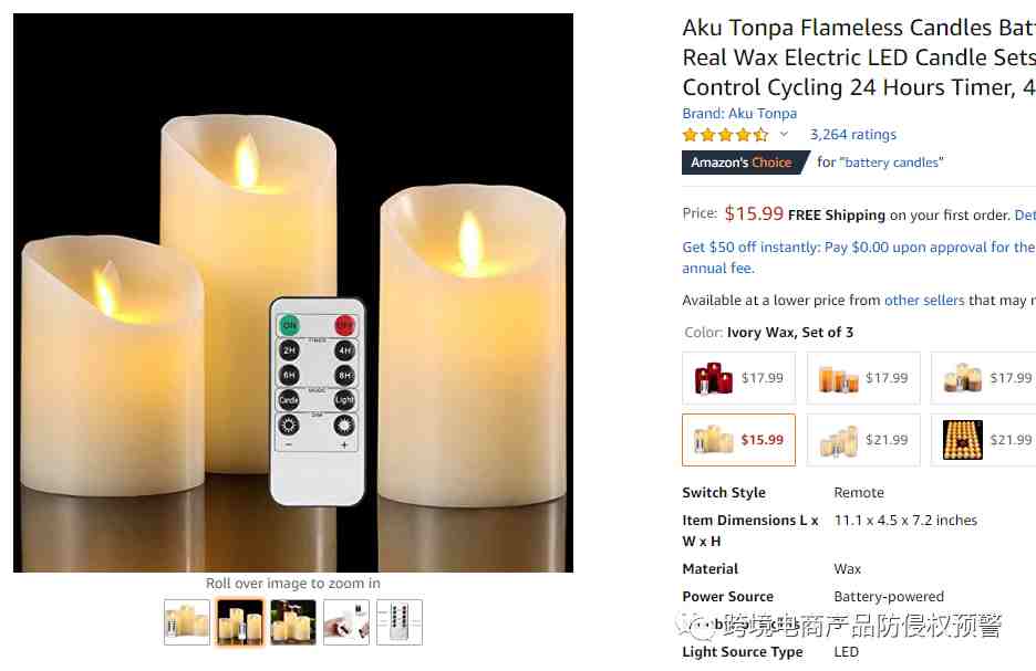 其中蜡烛灯就很受美国民众的欢迎,例如下面这款蜡烛灯,目前是亚马逊美国站的Amazon's Choice,留评3264: