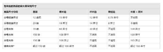 以下是包装过商品的最大尺寸和重量,建议选品尺寸可以在大号标准尺寸(Large standard-size )之内,如果在小号标准尺寸(Small standard-size )之内是最好的!
