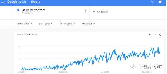 网红营销过去5年搜索量持续增加1500%,并保持持续增长