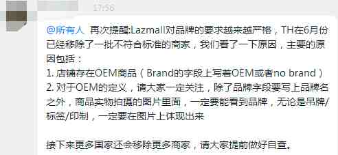 01 号称疫情期间管控得力的越南政府最近过得不太好,由于疫情反弹,自7月25日以来累计新增病例174例,约为之前总量的四分之一,9万多人被排查;印度尼西亚累计确诊病例突破11万;新加坡这个只有570万人口的国家目前依然日增过百;马来西亚、泰国和菲律宾也不好过。 面对如此形势,不少卖家又开始动起了防疫物品的心思。不过在此要提醒各位的是,Lazada工作人员已经明确提醒,不要触碰规则: 未下架的防疫物品会被平台作为违禁品按照规则进行处置; 已经形成的订单,发往仓库会被仓库拦截;发往海关会被海关拦截。泰国站会按照1500泰铢/单进行处罚。 越南站对本土店铺售卖防疫物品也作出了规定: 对售卖防疫物品卖家实施新的OVL考核标准,将取消率换为每天取消产品数,按天进行考核。严重者可关店。 02 近期不少卖家反馈,自己Lazmall店铺的资格将被移除,原因是上架了非品牌产品。 随后,Lazada小二在官方群发布通知,最近严查Lazmall店铺,还请万分注意。 (1)店铺存在OEM商品(Brand的字段上写着OEM或者no brand) (2)实物拍摄的图片中,没有显示品牌字样 Lazmall店铺申请不易,且用且珍惜。更多相关资料后台回复“Lazmall规则”获取,好好再熟悉熟悉规则。 03 说起虚拟仓,很多新手小白并不明白怎么回事,但对于做本土店铺特别是泰国本土的卖家,那是相当熟悉。 不用囤货却做着本土店铺的生意,没“风险”还有本土流量,那可真是美滋滋。然而最近一定要多加注意。 由于越南和欧盟自贸协定的签订实施以及越南近期疫情影响,陆运到泰国的时效会大大延长。原本4天左右的时效可能会延期至10天,甚至更久。 因此,做虚拟仓的卖家需要时刻关注SOT和取消率两个指标,以免被限单,影响报活动的资格。 毕竟下半年全是大促,千万不要在这么关紧的时刻掉链子哦!