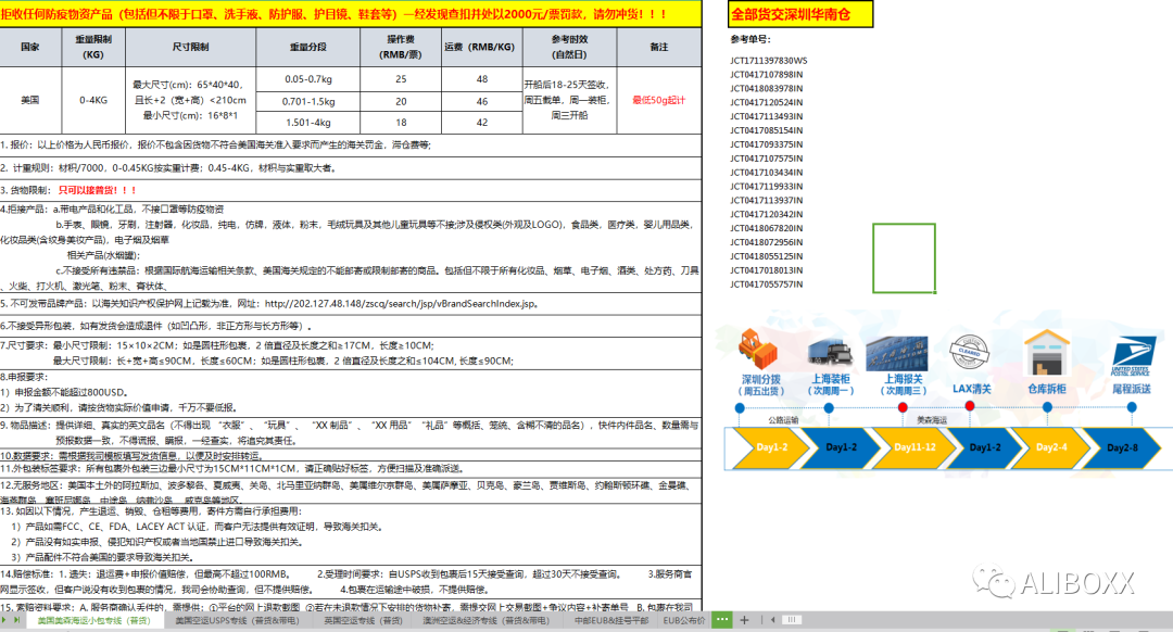 跨境物流代理商会直接发一个excel报价表过来,如下图: