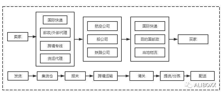 大部分中小型跨境卖家不具备备货渠道和能力,只能采用直邮小包方式发货,从而免去产品滞销和清关风险。我大致梳理了一下出口直邮的主要环节和流程,如下图: