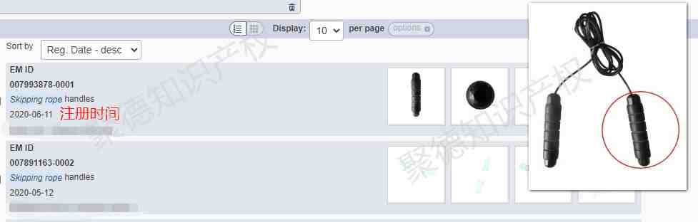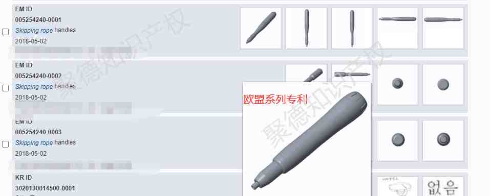 除了这款跳绳产品有欧盟外观专利,还有这些专利,请看下图: