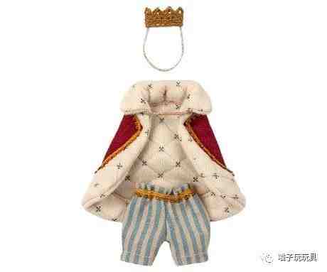这些可爱鼠尺寸不一,Maileg的设计师为他们制作了各式各样的小衣服,比如威严霸气的国王披风: