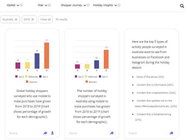 Facebook提供的第一个关键工具是交互式数据洞察仪表板,该仪表板基于最近三年的数据提供有关与不同市场中的消费者的发现,研究和购买阶段有关的关键季节性趋势的信息。