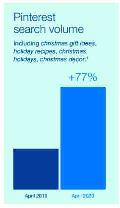 7月份,刚刚踏入2020年下半年,绝大多数电商企业都还处于对下半年活动的排期阶段,Facebook圣诞节营销指南便发布了。今年这份指南来得史无前例的早,是什么让Facebook如此早就将目光放在了圣诞节上?Pinterest上个月发布的调查报告显示,用户对圣诞节的搜索已经大幅提升。一切都源于新冠(COVID-19)在全世界范围内造成的大规模破坏。这使得人们比以往更加期待圣诞节的到来。假期舒适的休闲时间、亲朋好友的团聚、庆祝活动……加上圣诞节是一年中最后的一个节日,毫无疑问人们都希望这糟心的2020年能有一个比较美好的结束。这些无疑为圣诞节赋予了人们更高的期待。From Earlier-than-ever-Pinterest-Holiday-2020报告显示,4月份,Pinterest的假日搜索量同比增长了77%。其中包括“圣诞节礼物创意”的搜索量增长了3倍,而“假日食谱”和“圣诞节”等其他查询的搜索量分别增长了90%和80%以上。