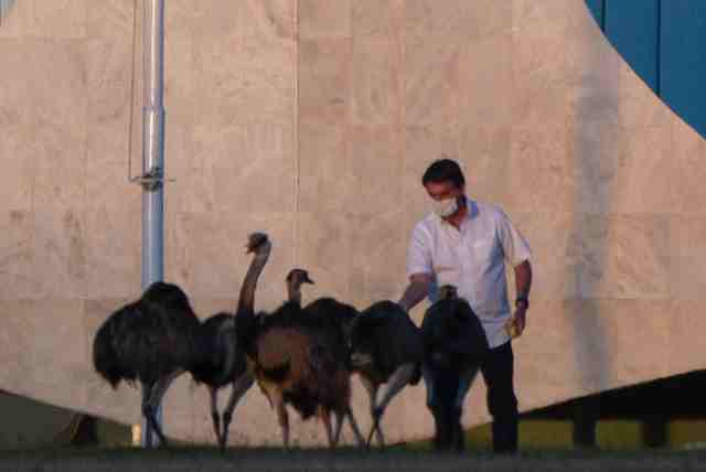 愉快喂鸵鸟的巴西总统博索纳罗,很快被鸵鸟咬了