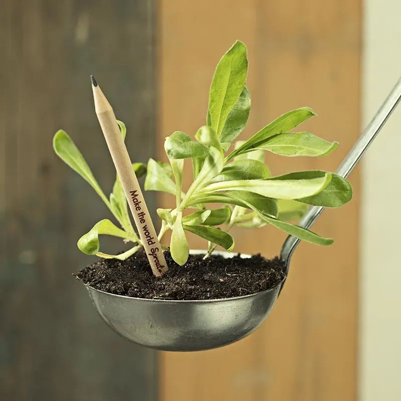 本发明涉及用于生长植物的仪器,试剂盒和方法。在一些实施例中,本发明涉及一种能够产生植物的书写工具。这种书写工具可以包括具有书写端和相对的非书写端的壳体。另外,可以在壳体的非书写端放置包含一个或多个种子的胶囊。放置在潮湿的土壤中以释放出种子后,胶囊可以降解。